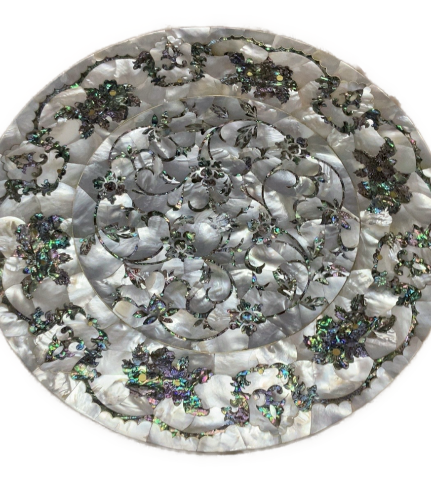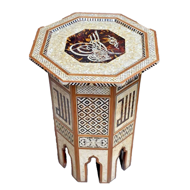 Handmade Wooden End Table Carving Wood Table Home Decor Mother of Pearl Inlay