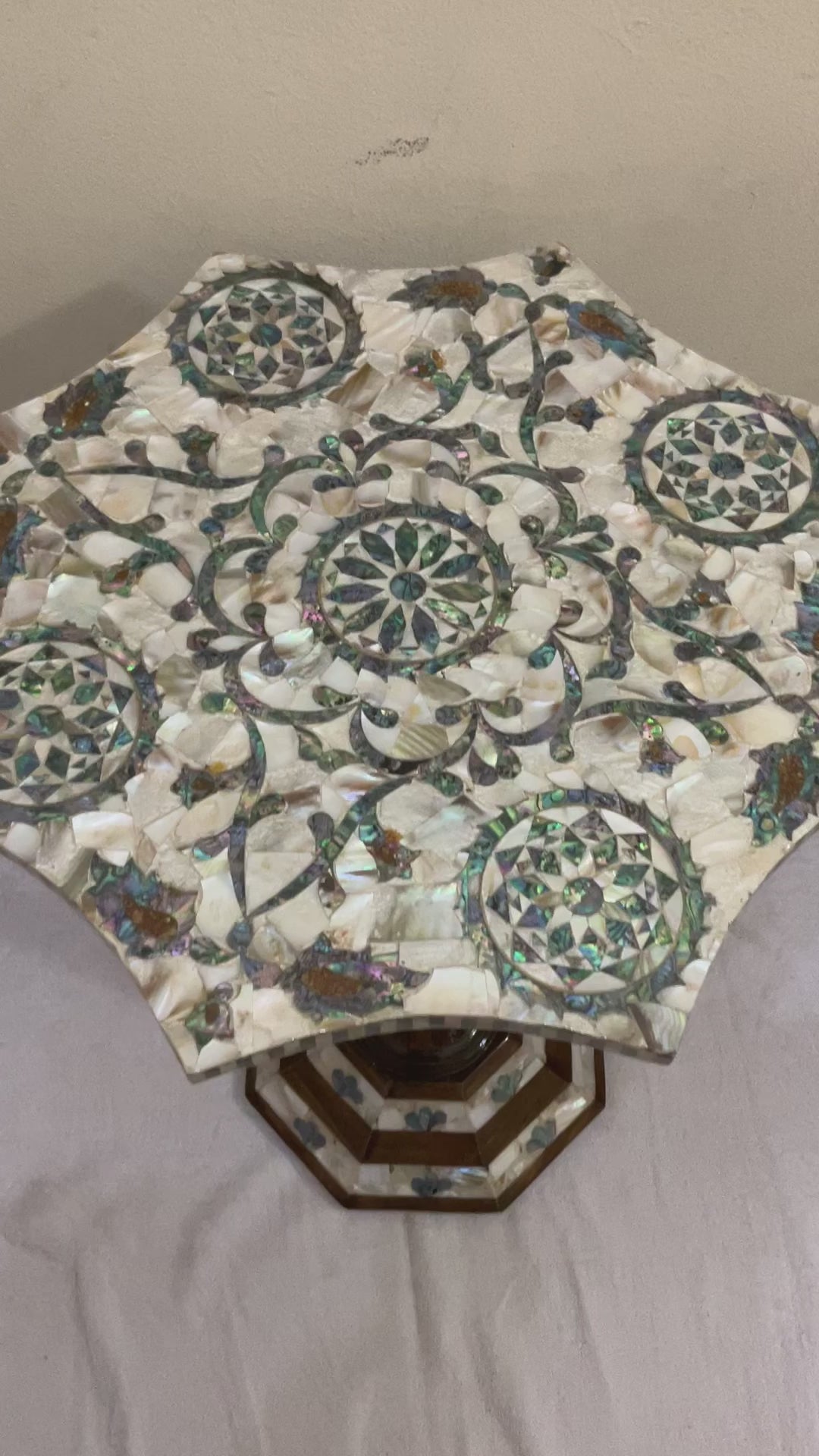 Handmade Wooden End Table Carving Wood Table Home Decor Mother of Pearl Inlay