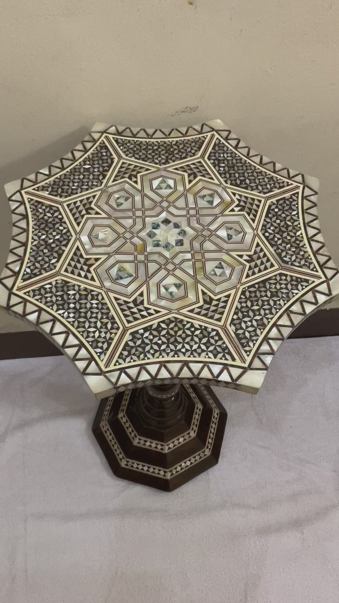 Handmade Wooden End Table Carving Wood Table Home Decor Mother of Pearl Inlay