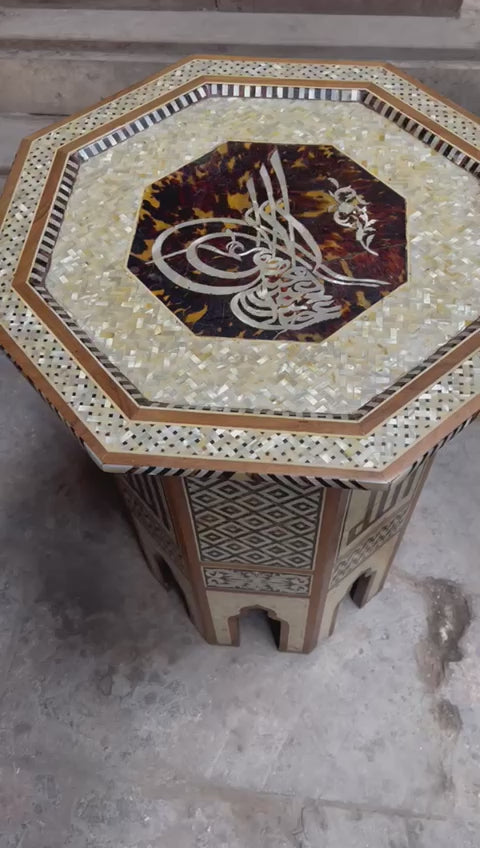 Handmade Wooden End Table Carving Wood Table Home Decor Mother of Pearl Inlay