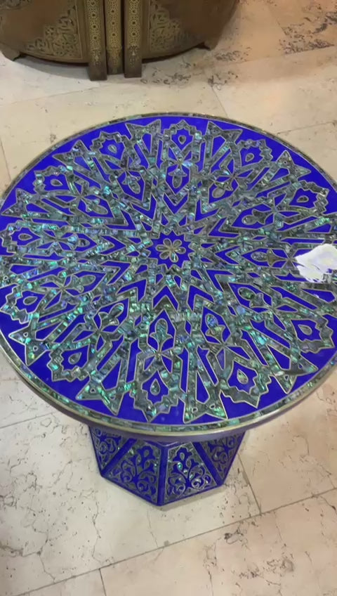 Handmade Wooden End Table Carving Wood Table Home Decor Mother of Pearl Inlay
