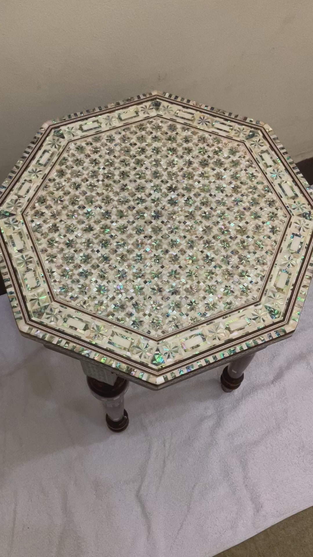 Handmade Wooden End Table Carving Wood Table Home Decor Mother of Pearl Inlay